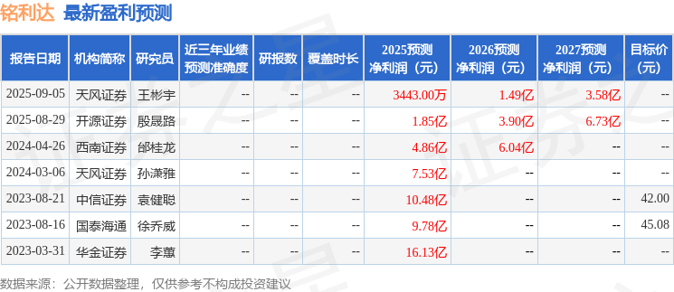 以下是详细的盈利预测信息: