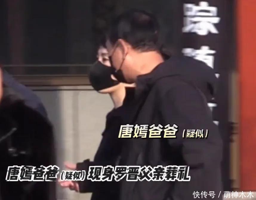 唐嫣父亲疑似被拍到现身告别仪式,一身黑衣戴着黑色口罩,身边还有几人陪同。