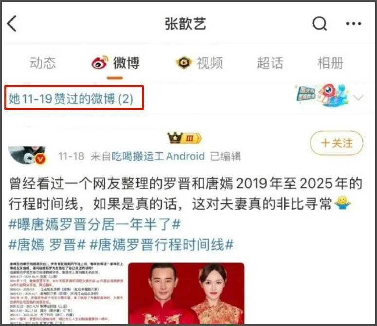 但后来张歆艺又点赞唐嫣和罗晋分居的内容,张歆艺和唐嫣还有过合作,这是吃瓜手滑,还是知道内幕为唐嫣抱不平?